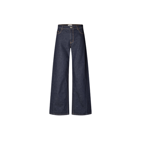 Disse NO.03-jeans fra Baum und Pferdgarten har høj talje og wide-leg pasform, der skaber en afslappet og moderne silhuet. Den klassiske denim i økologisk bomuld med en smule stretch giver både komfort og struktur, mens det tidløse 5-lommedesign og den let snoede søm foran tilføjer et subtilt, stilfuldt udtryk. Jeansene er perfekte som en basis i garderoben — brug dem med sneakers og t-shirt til hverdag eller med blazer og hæle for et mere elegant look.