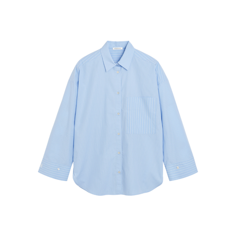 Schlichtes und zeitloses Hemd mit lockerer Passform, das für einen entspannten Look sorgt. Das Hemd ist mit einem klassischen Kragen, einer praktischen Brusttasche und breiten Manschetten mit kleinem Knopfverschluss ausgestattet. Auf dem Ärmel befindet sich ein schönes Logodetail. Das Shirt besteht aus einem leichten und luftigen Material, das sich angenehm auf der Haut anfühlt und schön fällt. Kombinieren Sie es mit der gestreiften Hose von By Malene Birger zu einem Set.
