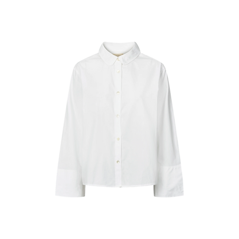 Flora er en kort skjorte med knaplukning hele vejen foran, fremstillet i 100% økologisk bomuldspoplin. Den har krave, brede manchetter samt bærestykke og læg bagpå, som giver skjorten et klassisk og struktureret udtryk. Flora er designet med en regulær pasform for komfort og bevægelsesfrihed.