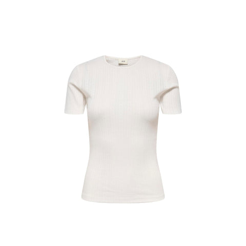 Denne top har en rund halsudskæring og korte ærmer, der giver et enkelt og tidløst udtryk. Med sin tætsiddende pasform fremhæver den figuren på en elegant måde. Toppen har en lys farve, benævnt Cloud dancer, der passer godt til forårssæsonens garderobe. Den er fremstillet med mindst 50% økologisk bomuld, hvilket tilføjer et bæredygtigt element til dit valg af tøj. Denne alsidige top er perfekt til skole, arbejde eller hverdagsbrug, hvor du ønsker et cool og letkombinérbart look.