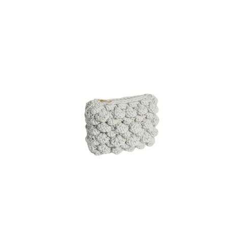 Delikat, håndstrikket pung i kraftig højlandsuld. Designet i et smukt perlemønster med lynlåslukning, mens foret er dekoreret med broderede initialer fra den kvindelige håndværker, der har håndstrikket pungen.