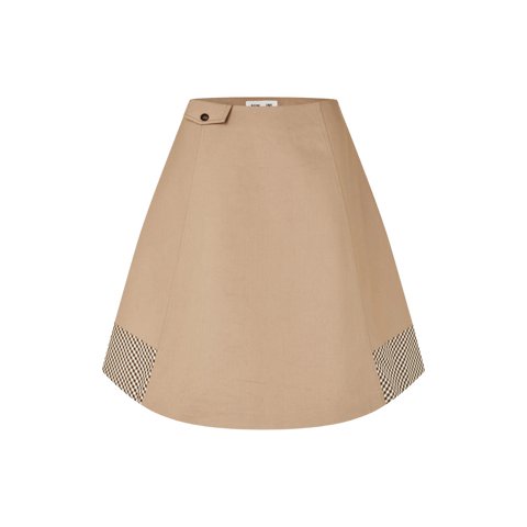 Siv-nederdelen er fremstillet i kraftig økologisk bomuld, der giver en flot og struktureret silhuet. Det klassiske A-snit kombineret med midi-længden skaber et tidløst og feminint udtryk, som passer til både hverdag og mere formelle anledninger. En diskret ternet detalje ved kanten tilfører et raffineret touch, mens den mellemhøje talje sikrer en flatterende pasform. Nederdelen lukkes med lynlås og knapdetalje i siden for en elegant og ren finish. Style den med skjorte, strik eller en enkel top for et stilfuldt og alsidigt look.