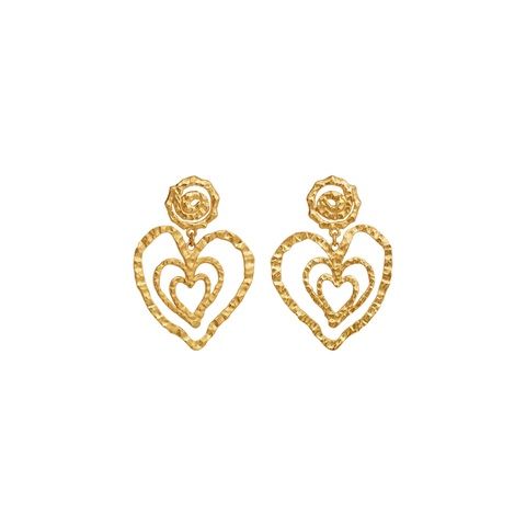 Lad romantikken få plads i dit smykkeudtryk med Beate øreringene fra Maanesten – et design hvor kærlighedens symbolik er koblet direkte til dit look. Disse elegante øreringe viser kærligt forbundne hjerter, der smukt følger hinanden i et legende mønster, som en blid påmindelse om, hvordan kærlighedens energi fortsætter og vokser, når den gives videre.