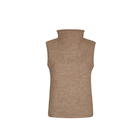 A soft knit sweater in a dark sand color that combines comfort with style. The sweater is knitted and has a light look thanks to the material mix, which includes wool, which gives a warm and comfortable feeling. With a size 38, it is perfect for the adult woman who wants an elegant and timeless knitwear in her wardrobe.