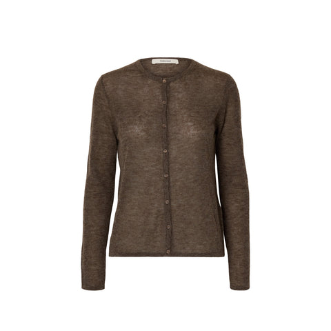 Denne cardigan har rund hals og lange ærmer med ribkanter ved ærmerne, der giver et klassisk og komfortabelt udtryk. Knappelukningen foran gør den nem at tage af og på og giver også et tidløst look. Passformen er regular, hvilket sikrer god bevægelsesfrihed og en afslappet silhuet. Cardiganen er strikket og kommer i flere farver, som nemt kan kombineres med mange forskellige outfits. Den er fremstillet med et bæredygtigt fokus, herunder mindst 20% certificerede alpaka-fibre, som tilfører blødhed og kvalitet. Designet henvender sig til kvinder og er velegnet til brug hele året rundt.