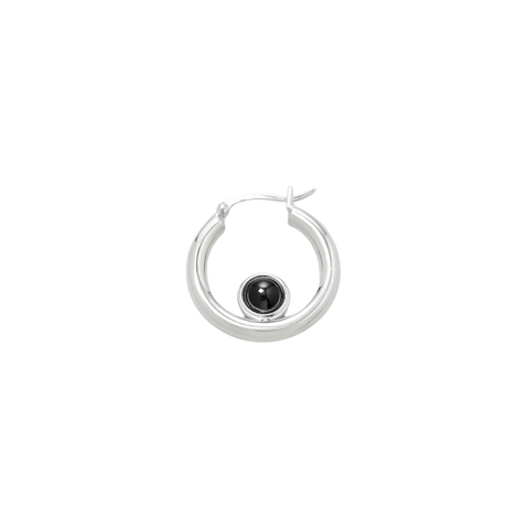 The Onyx Hoop is a timeless and elegant earring made of 925 sterling silver. The refined, round shape surrounds a black onyx stone, which is traditionally associated with grounding and protection. The result is a minimalist yet striking hoop that is perfect for everyday wear and beautiful on its own as well as in combination with other earrings.